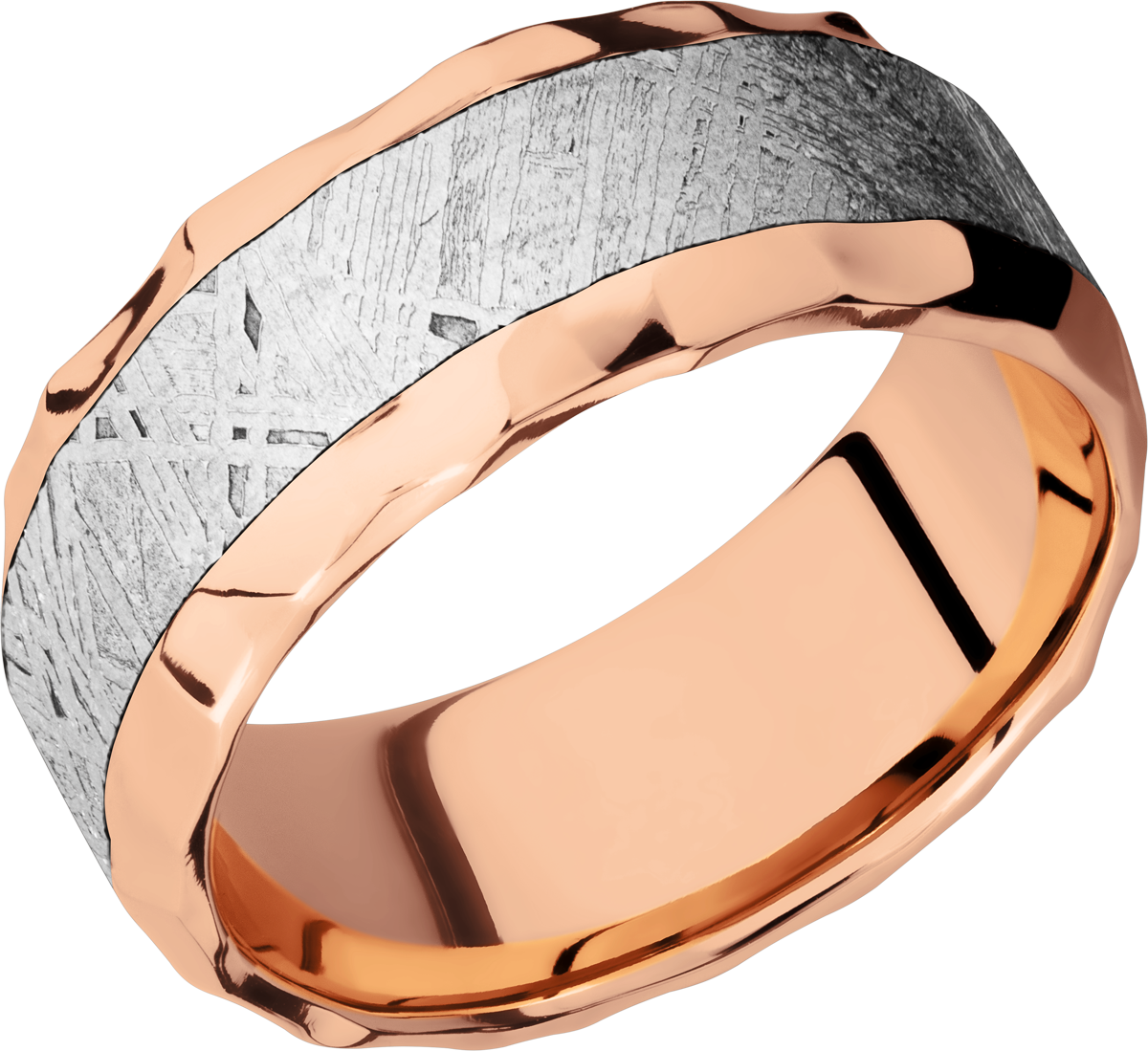14K Rose gold 9mm beveled band with an inlay of authentic Gibeon Meteorite