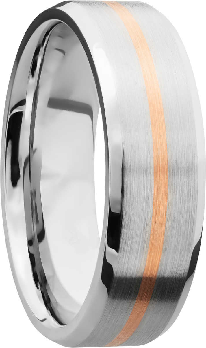 Cobalt chrome 7mm beveled band with 1, 1mm inlay of 14K rose gold