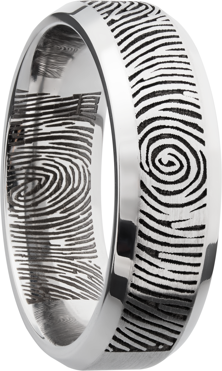 Cobalt chrome 7mm beveled band with a laser-carved fingerprint