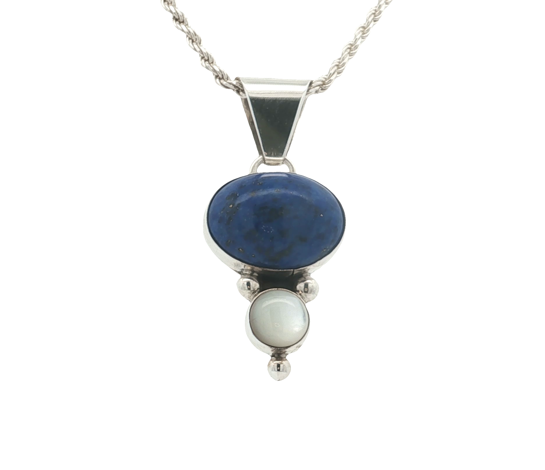 Sterling Silver Drop Pendant With Lapis And Mother Of Pearl