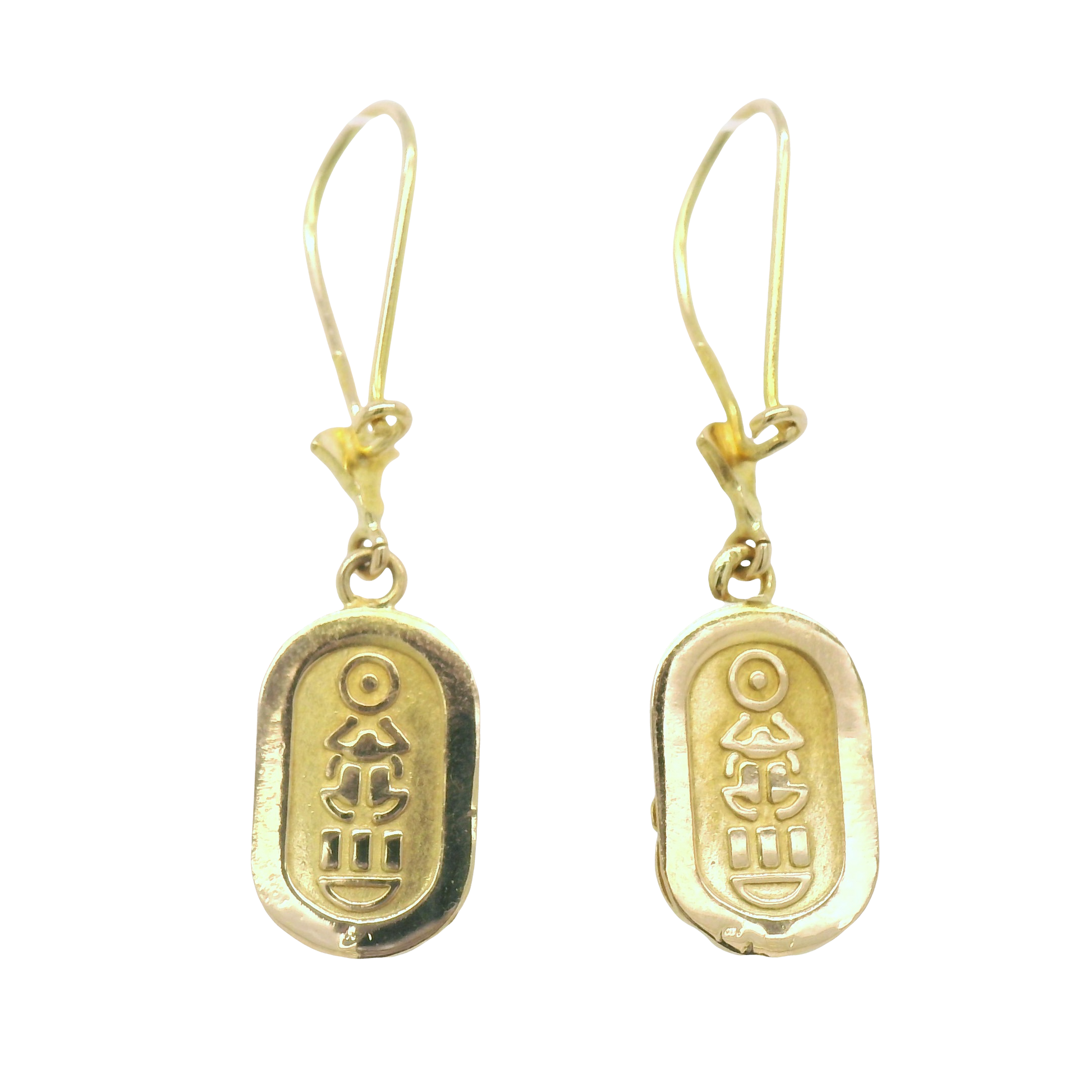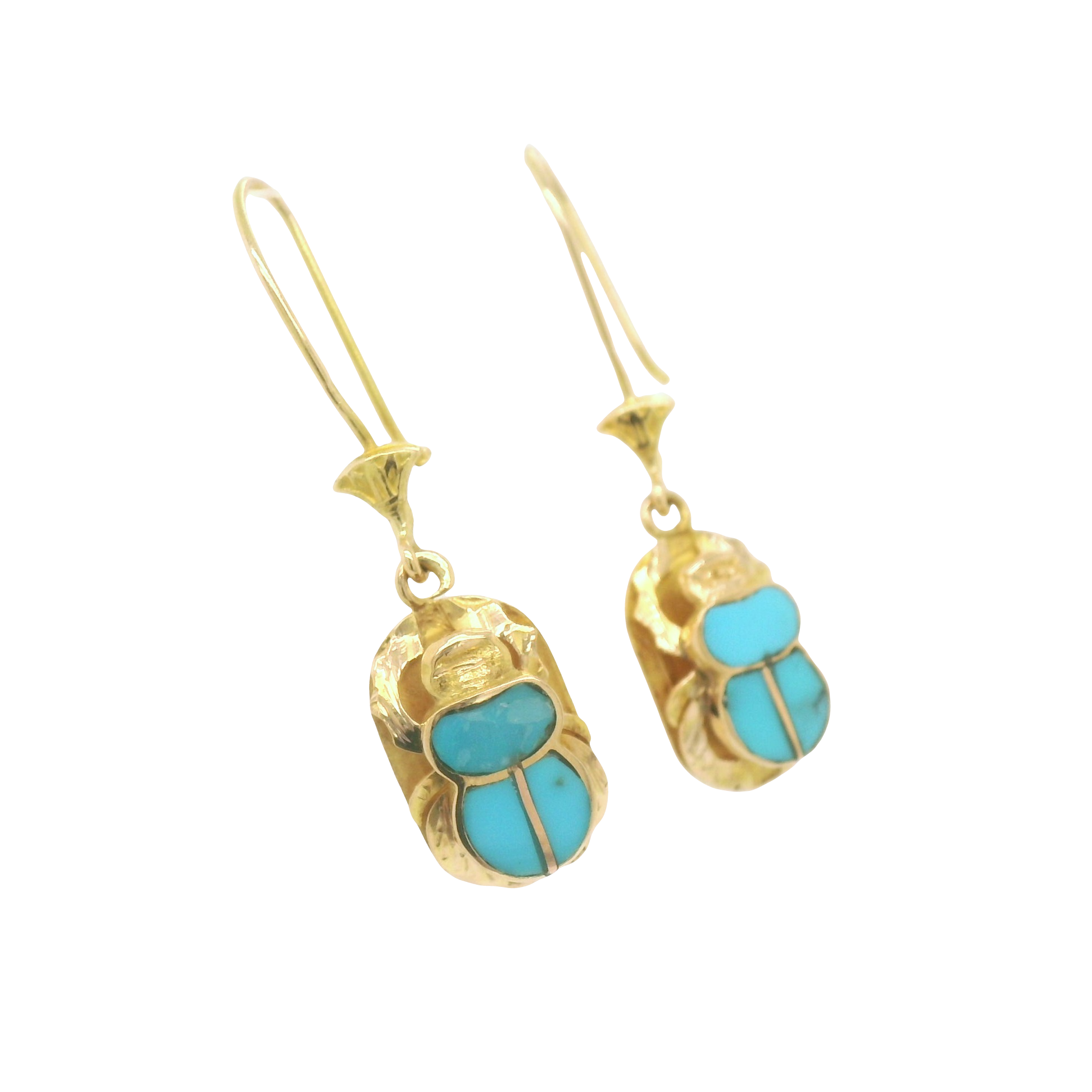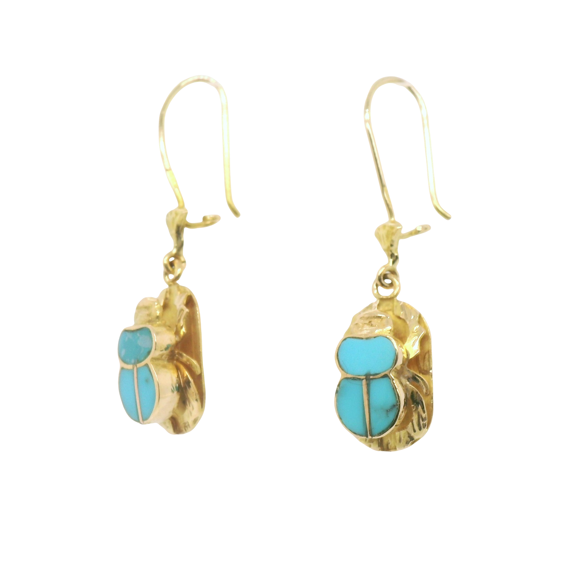 Scarab Beetle Drop Earrings In 14K Yellow Gold With Turquios Inlay