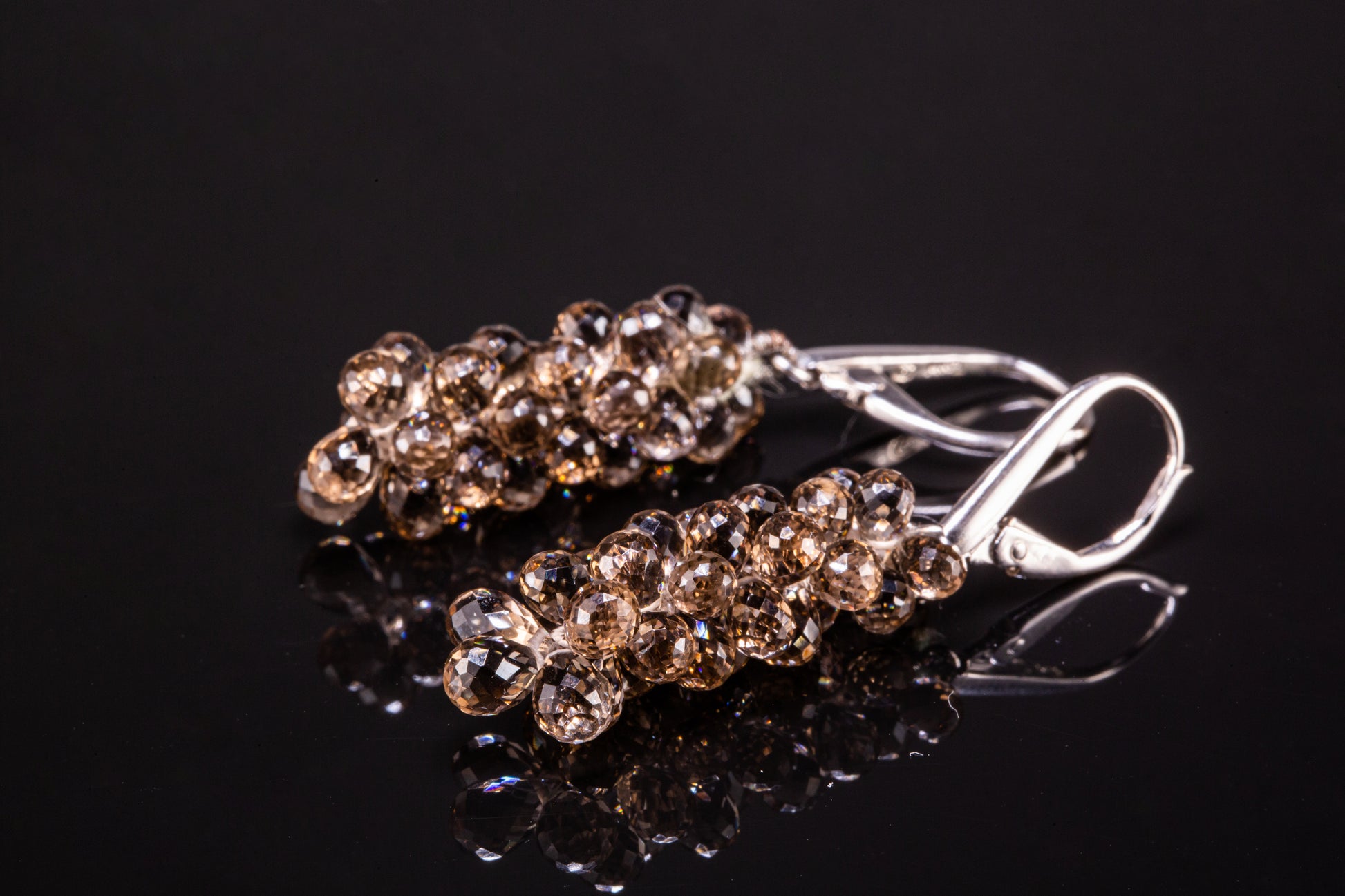 Rutilated Quartz And Diamond Earring 14Kt yellow