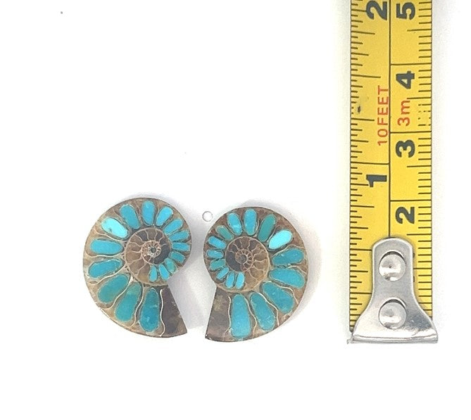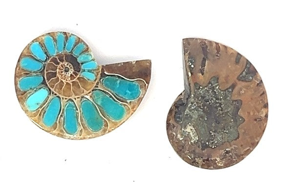 Ammonite With Turquoise Inlays, Loose Stone With 2=15.85 CTTW Natiural shaped