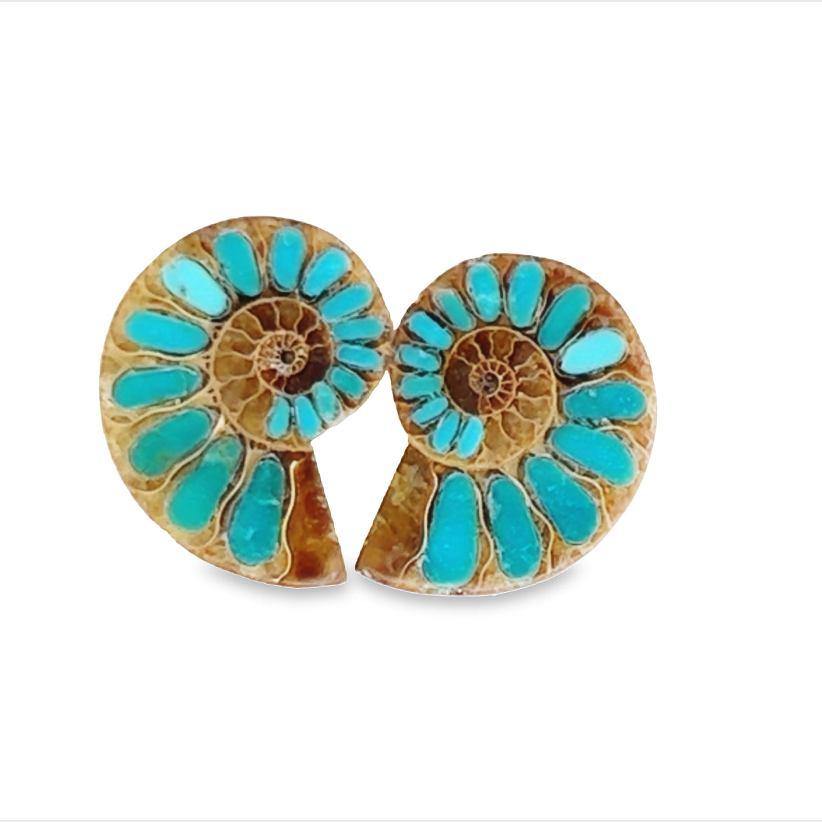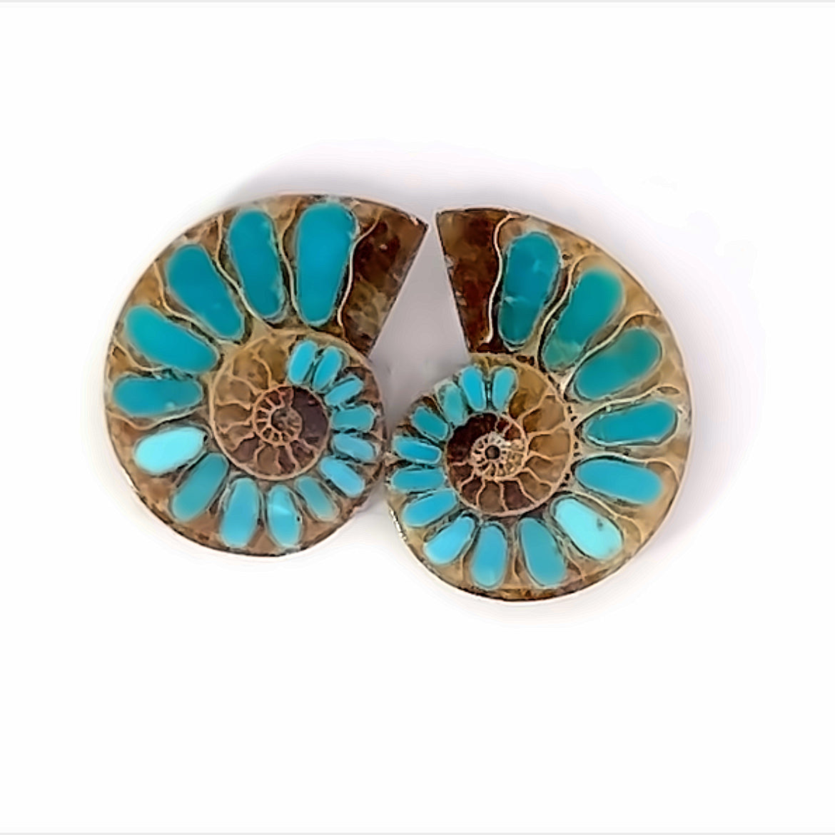 Ammonite With Turquoise Inlays Gemstones