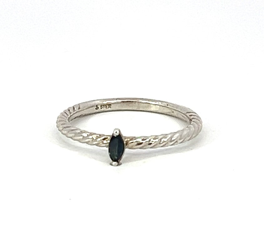 Sapphire Marquise Cut With Twisted Rope Design Stacking Ring, Sterling Silver
