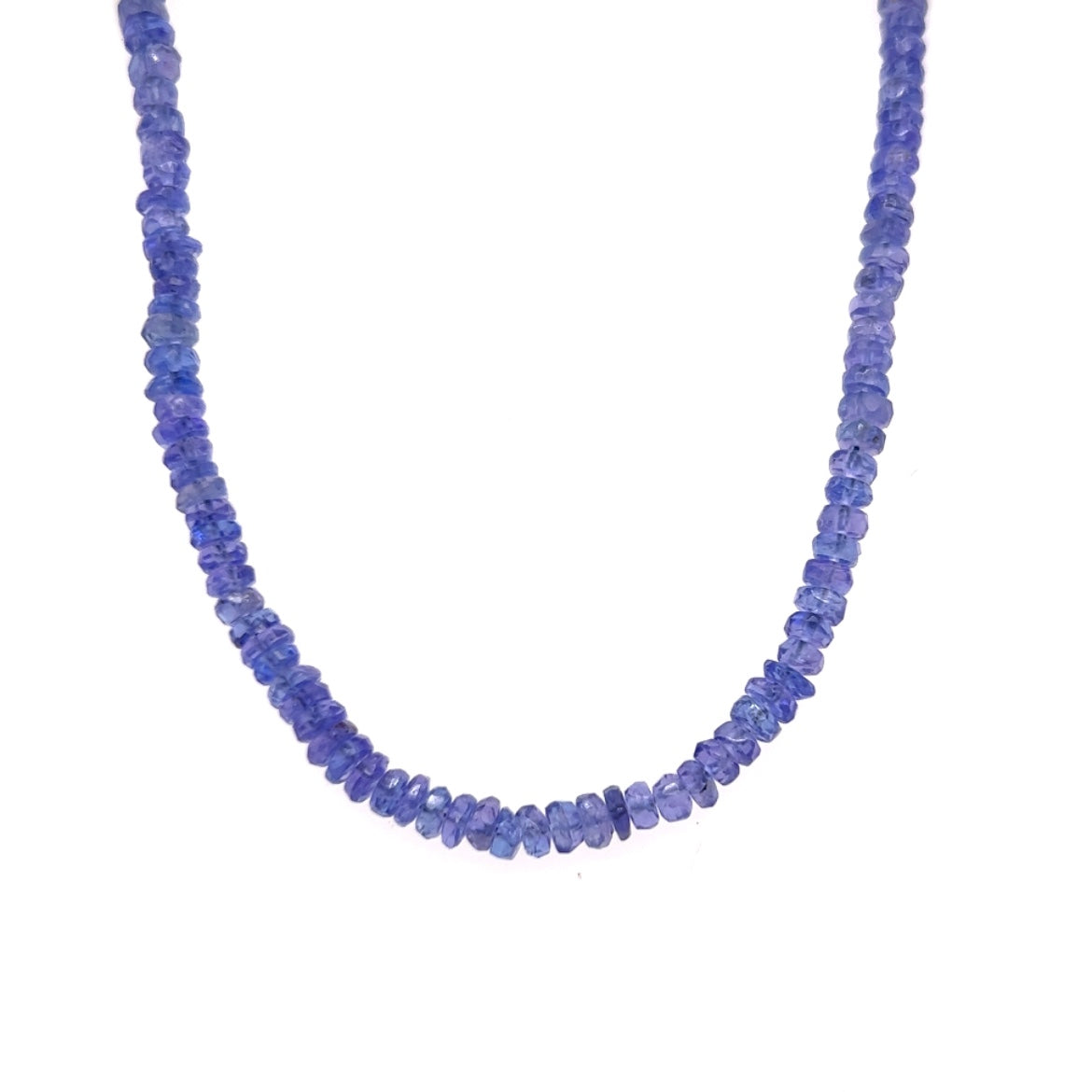 Elevate your style with this captivating beaded necklace, meticulously crafted with round cabochon-cut tanzanite beads. The stones, displaying a medium tone and strong saturation of bluish purple, form a mesmerizing strand. This tanzanite beaded necklace offers a sophisticated statement of understated elegance.Gold Lobster Clasp