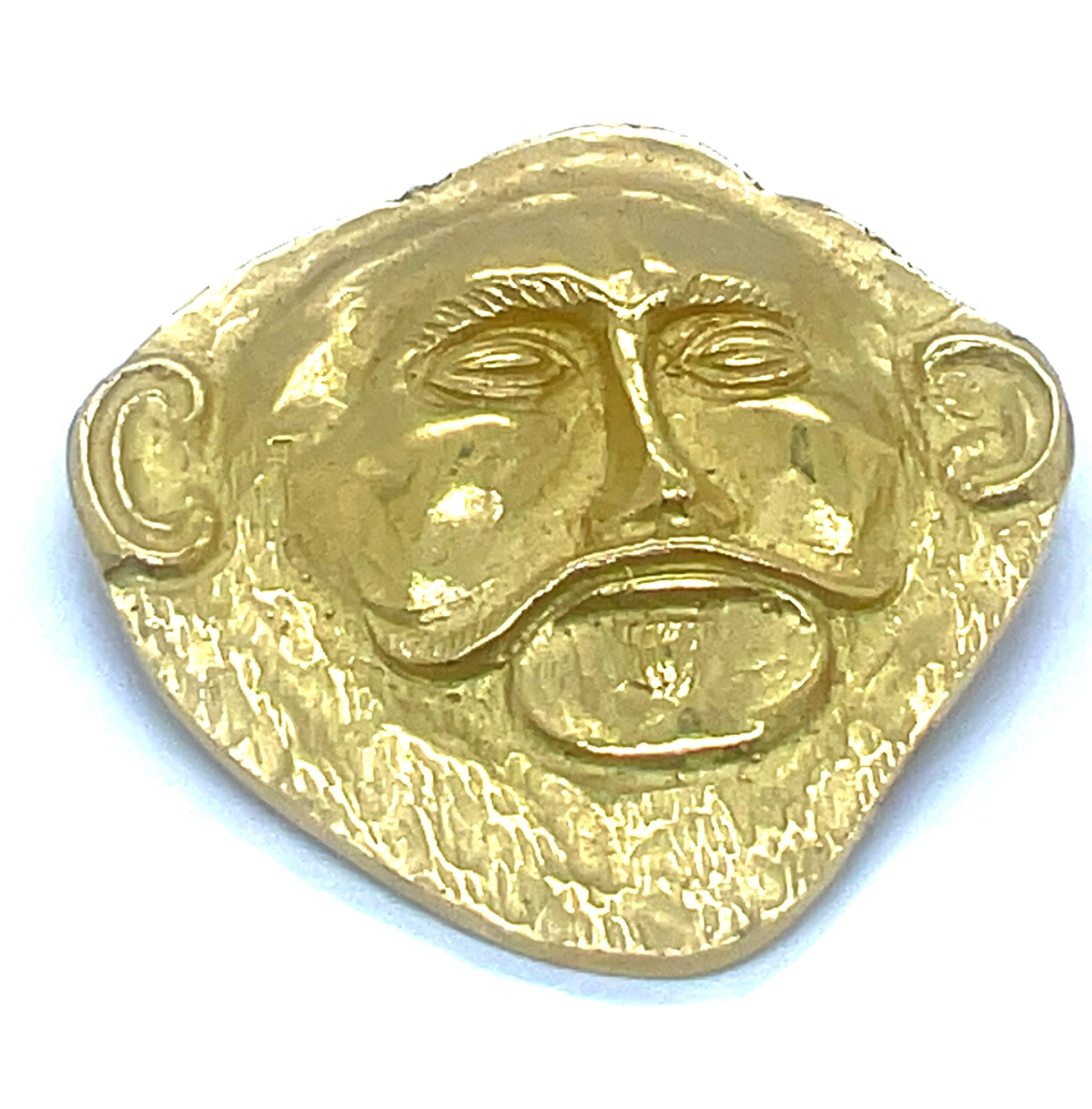 Elevate your style with this distinctive Greek Gold Death Mask, available as a convertible Pin or Pendant for those who appreciate wearable art.