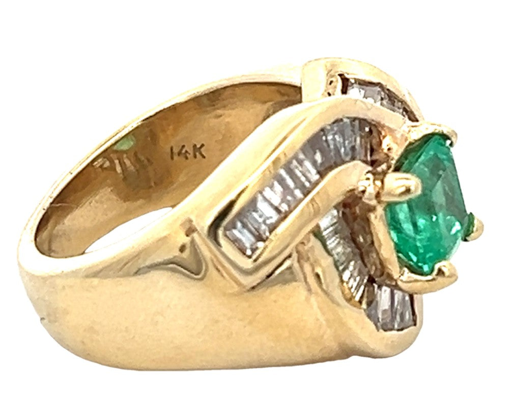 Square Emerald With Three Twisted Channels Of Baguette Cut Diamonds Accenting. The Ring Measures 8.5Mm Tall, 15.16X15.6Mm Across The Top And The Shoulders Measure 7.4Mm Tapering To 4.90Mm At The Base Of The Ring.