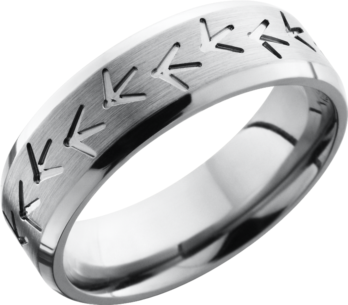 Titanium 7mm beveled band with a laser-carved turkey track pattern