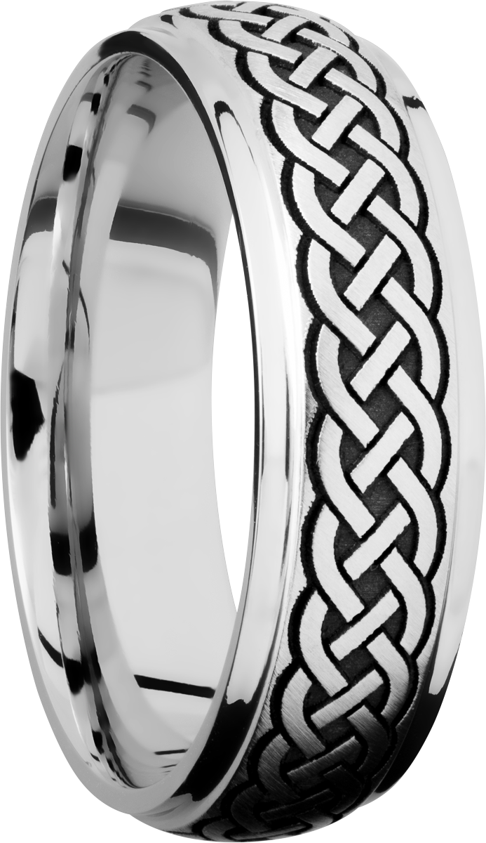 Titanium 7mm domed band with grooved edges and a laser-carved celtic pattern
