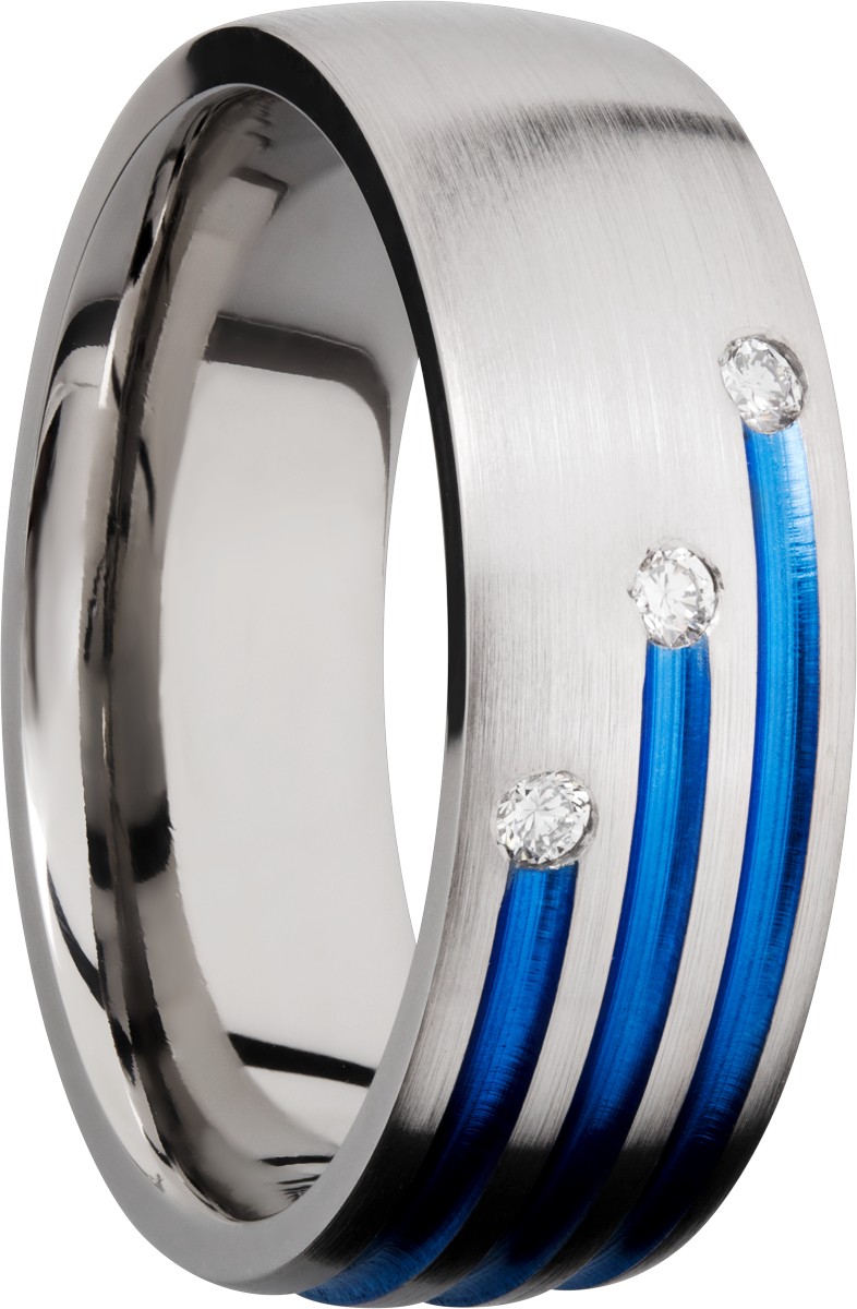 Titanium 8mm domed band with three staggered grooves with Cerakote and 3, .03 flush-set diamonds