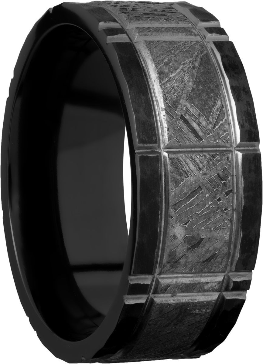 Zirconium 8mm flat band with an inlay of authentic Gibeon Meteorite