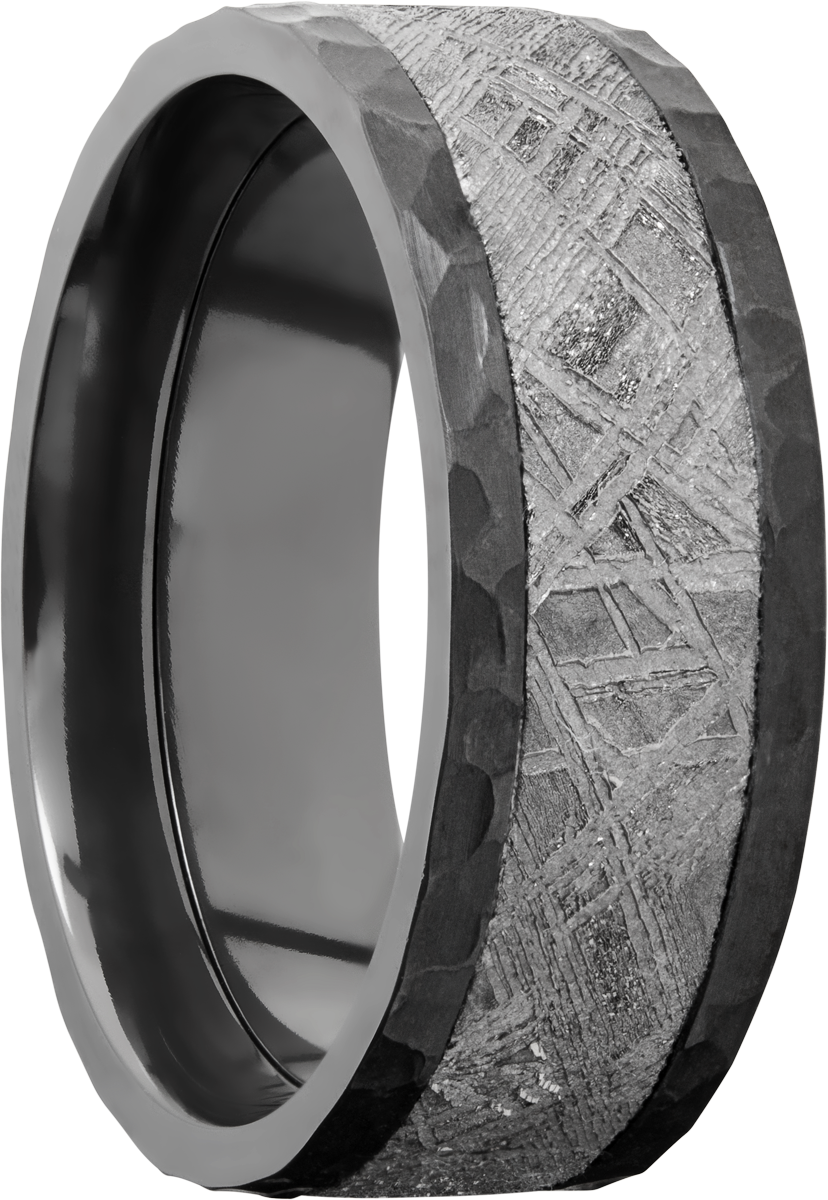 Zirconium 8mm flat band with an inlay of authentic Gibeon Meteorite